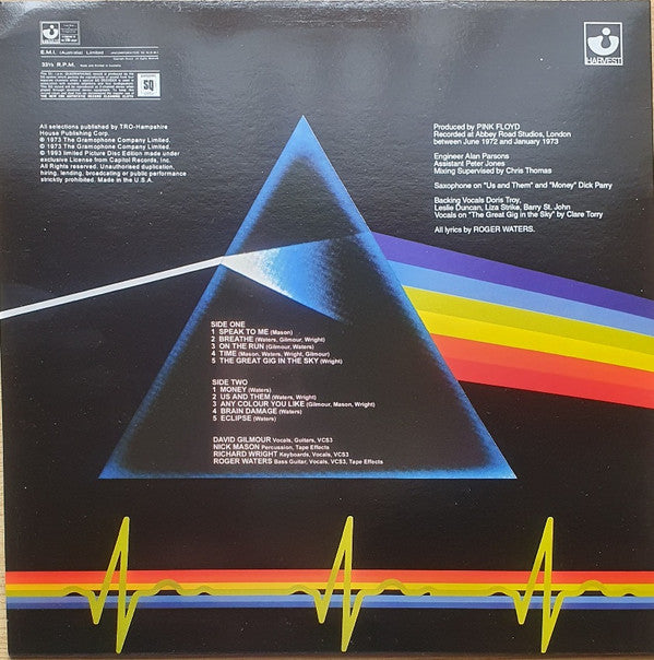 Comes with large poster (Pyramids). Was sold in Australia on the Pink Floyd Tour. SQ Quadraphonic mix by Alan Parsons