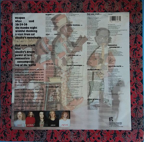 Recorded & Mixed at Fort Apache, Cambridge, MA. Nov.88 Toys (from cover image)- d&e "Ham and Sam" courtesy of Ferdinand Strauss Co. 1921 ℗ © 1989 Restless Records. Manufactured in the USA. Printed in Canada.