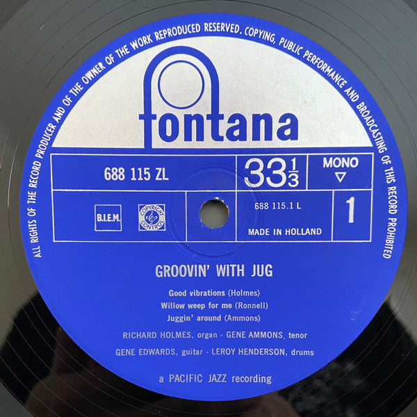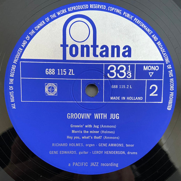 Tracks A1 - A3: Recorded at The Black Orchid, Los Angeles on the night of August 15, 1961. Tracks B1 - B3: Recorded at Pacific Jazz Studios on the afternoon of August 15, 1961. "Gene Ammons is heard by arrangement with ARGO Records" "A PACIFIC JAZZ recording PJ 32"