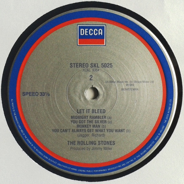 © 1969, The Decca Record Company Limited, London. On labels: Made In Holland. Issued with a generic, white inner sleeve. 80's silver label pressing