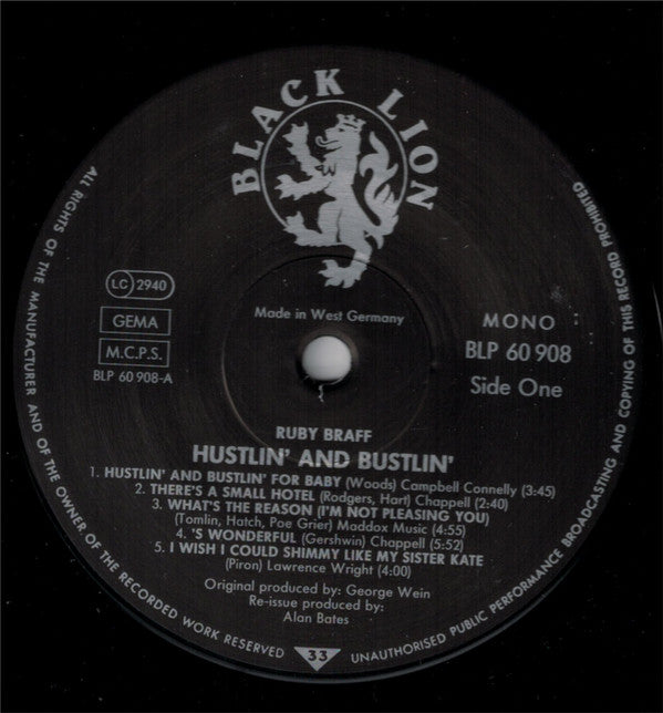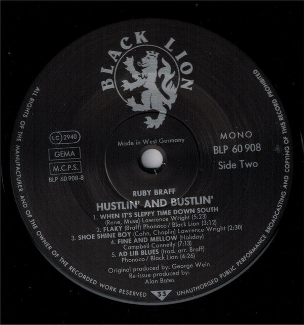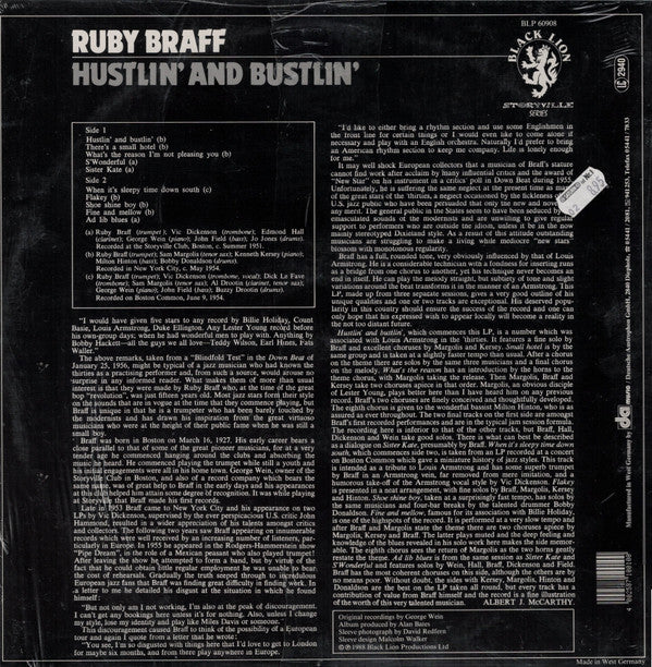 Original Recordings by George Wein Manufactured in West Germany [Reissue .(C) & (P) Black Lion Productions Ltd Recorded: - Tracks A4, A5, B5 Summer 1951 at the Storyville Club, Boston - Tracks A1 to A3, B2 to B4 May 1954 New York City - Track B1 on Boston Common, June 9 1954 Published By: A1, B4: Campbell Connelli A2, A4: Chappell A3: Maddox Music A5, B1, B3: Lawrence Wright B2, B5:Phonoco / Black Lion