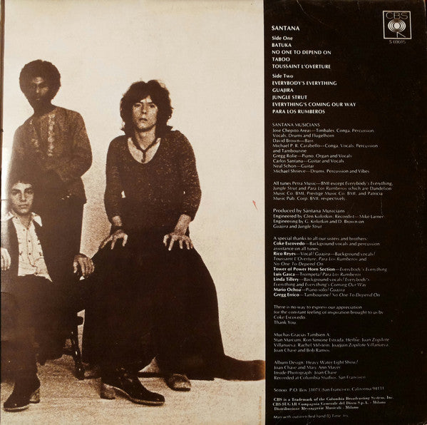 Laminated gatefold cover with sticker, on top right corner, that reads, "The New Santana Album". No title on the cover and spine. Orange label - Stereomono Man with outstretched hand © Time, Inc.