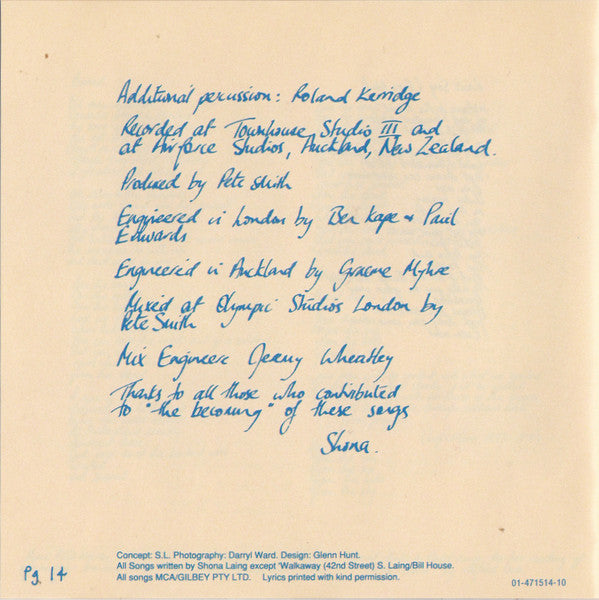 Made in Austria Recorded at Townhouse Studio III and at Airforce Studios, Auckland, New Zealand. Engineered in London. Engineered in Auckland. Mixed at Olympic Studios, London. Track 11 is not listed in the album artwork Durations taken from CD player