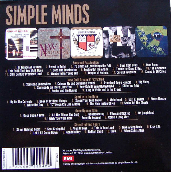 All Tracks 2002 Digitally Remastered Artwork © 2012 EMI Music Australia Pty. Limited Ⓟ 2012 The copyright in this compilation is owned by Virgin Records Ltd. Cardboard slipcase contain the discs in separate, original front/back cover artwork, sleeves. No booklet included. No writting/personnel credits are printed anywhere on release. Note: Although on CD is printed "Manufactured and marketed by EMI Music Australia Pty Limited under exclusiv license", it's actually made in Germany by EDC.