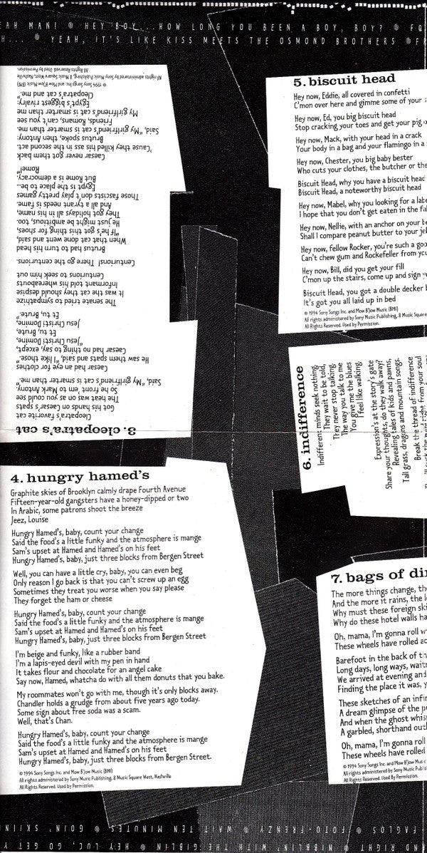 Tracks: Clinton Studios, NYC, March 1994. Mix: Acme Recording, Mamaroneck, NY, April 1994. Recorded and mixed on Tes-1 Reference Monitors. Mastered at Sterling Sound, NYC. Made in Austria Track listing on the back cover has 'Beasts In The Woods' as track 14..... and no track 13. Typo, surely.