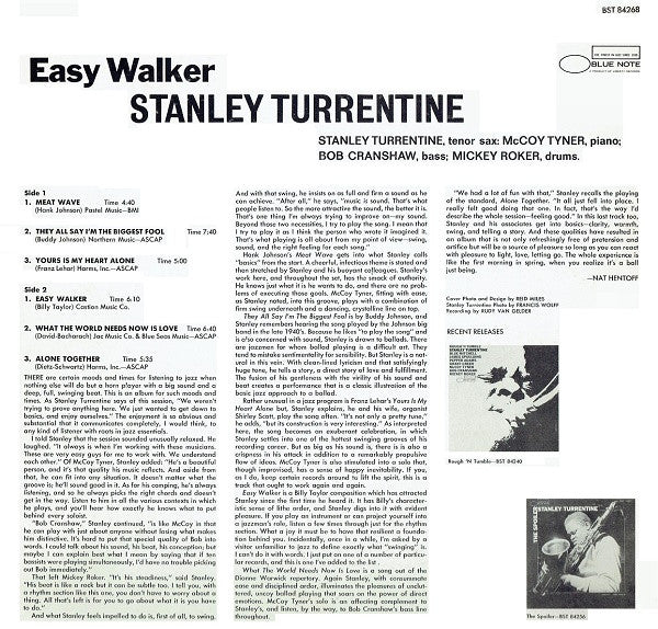 Recorded on July 8, 1966 at the Van Gelder Studio, Englewood Cliffs, New Jersey. Black and blue center labels with Blue Note logo in rectangle on left hand side. Address on cover: Blue Note Records Inc., 1776 Broadway, New York 10019 Address on labels: Liberty Records, Inc. letter A (for A Side) and letter B (for B side) written ander the catalogue number on both sides