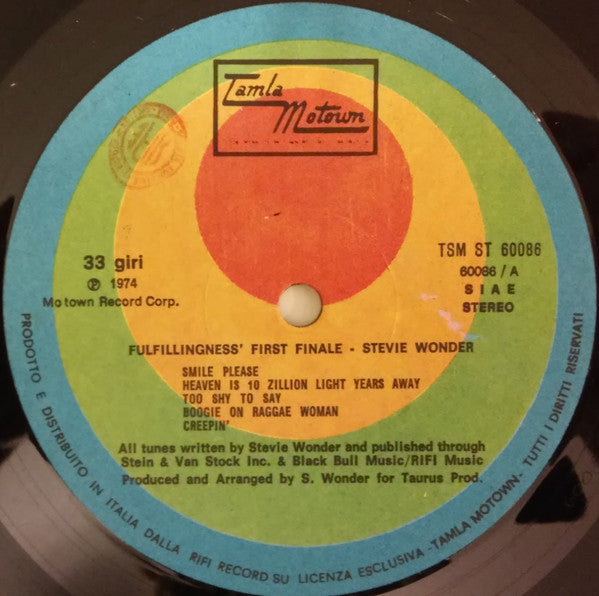 Produced and distributed in Italy By RIFI Record under license by Tamla Motown