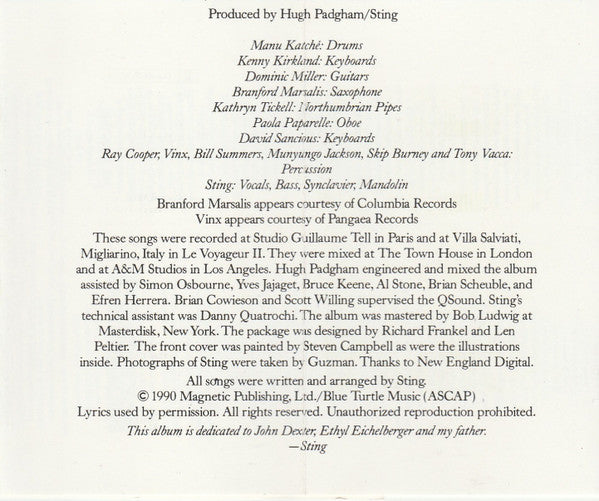 ℗ 1991 A & M Records, Inc., Los Angeles. Reproduction prohibited. © 1991 A & M Records, Inc., Los Angeles. All rights reserved. © 1990 Magnetic Publishing, Ltd./Blue Turtle Music (ASCAP) Total playing time 25:08 + 23:02 minutes. Made in Holland. Also released with a different price code.