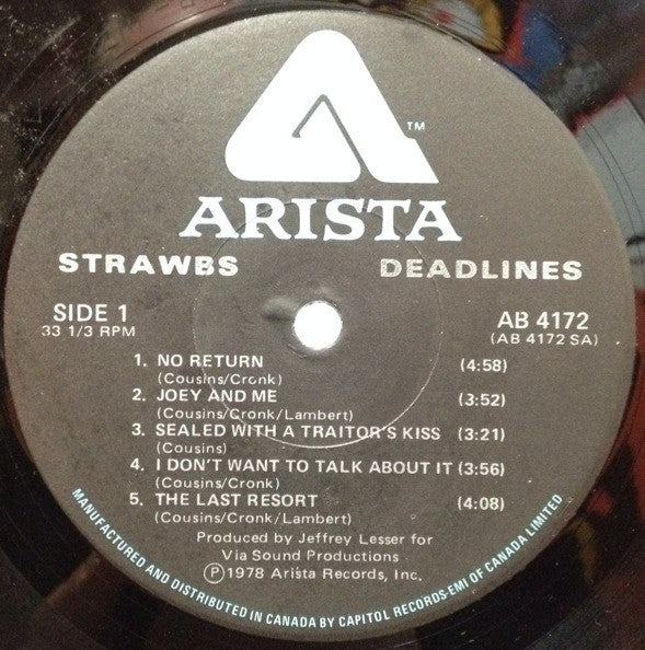Manufactured and Distributed in Canada by Capitol Records-EMI Of Canada Limited, 3109 American Drive, Mississauga, Ontario, L4V 1B2. (P)&(C) 1978 Arista Records, Inc.