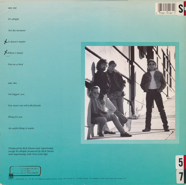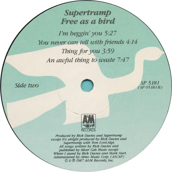 ©&℗ 1987 A&M Records Inc. Recorded at the Backyard Studio, Encino, California Ocean Way Recording, Hollywood, California Mixed at Larrabee Sound, West Hollywood Mastered at Masterdisk, New York, New York Direct Metal Mastering (DMM) Custom inner sleeve contains lyrics/credits