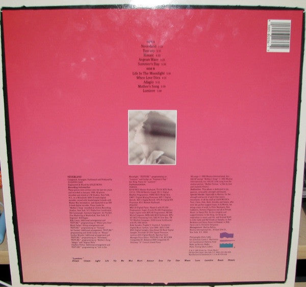 Grammy Award nominee. Mother's Song is the title song from the film Mother Teresa. "Recording information: These pieces were written over the last two years and recorded in January, 1988. All pieces recorded and mixed at C/M Studios, New York, N.Y., on a Mitsubishi X800 32-track digital recorder, mixed with Amek/Angela Console with Master Mix Automation, and mastered to an X80 2-track digital recorder."