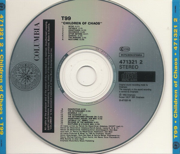 ® 1992 Emphasis except track 3, 8, & 17 ℗ 1991 Emphasis © 1992 Sony Music Entertainment (UK) Ltd Distribution Sony Music