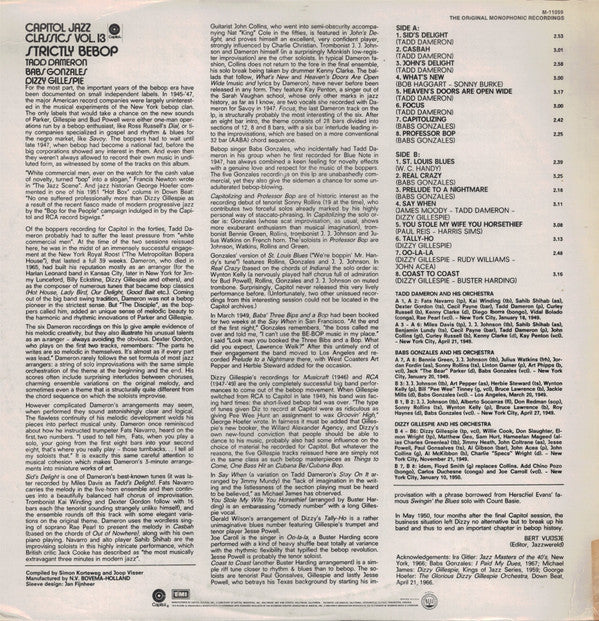 A1, A2 - New York City, January 18, 1949. A3-A6 - New York City, April 21, 1949. A7, A8 - New York City, January 20, 1949. B3 - Los Angeles, March 20, 1949 B1, B2 - New York City, April 27, 1949. B4-B6 - New York City, November 21, 1949. B7, B8 - New York City, January 10, 1950.