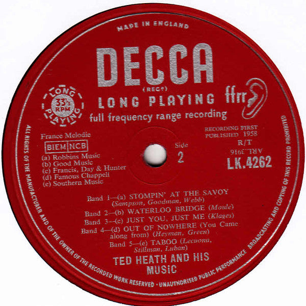 © 1958 but sleeves were printed March 1959 Made in England. Kenny Baker appears courtesy of Nixa Record Co., Ltd. Don Rendell appears courtesy of Denis Preston. Advertised as a new April release in "This Month's Decca Popular LPs in Stereo and Mono", Gramophone magazine, April 1959, p. 57.