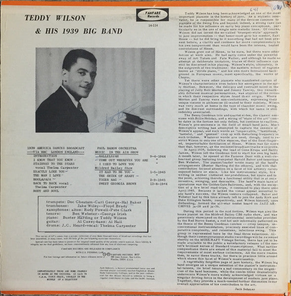 Side A: 1939 America Dances Broadcast via BBs London (England) B1 - B3: Paul Baron Orchestra "Music In The Air Show" - 9-4-1944 B4, B5: Mildred Bailey Show, 1-5-1945 B6 : " " " 2-9-1945 B7 : " " " 12-8-1944