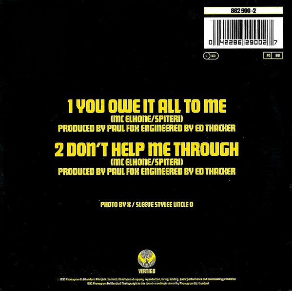 Released in a cardboard sleeve. ℗ 1993 Phonogram Ltd (London) © 1993 Phonogram Ltd (London) Made in France by PMDC