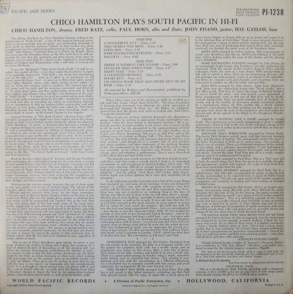 Copyright 1958 by World Pacific Records 1958 reissue of original 1956 release. All material published by Williamson Music, ASCAP.