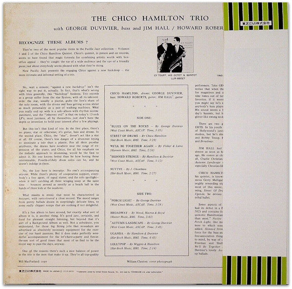 With insert Title Variations: - on frontcovert: Chico Hamilton Trio - on spine, rear cover and center label: The Chico Hamilton Trio