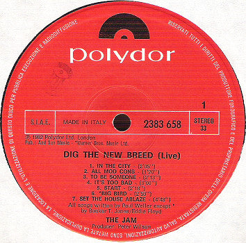 Live album with songs from different Jam gigs (1977-82). Picture sleeve with white center, not a die-cut. Printed inner sleeve with photos and credits. Made in Italy.