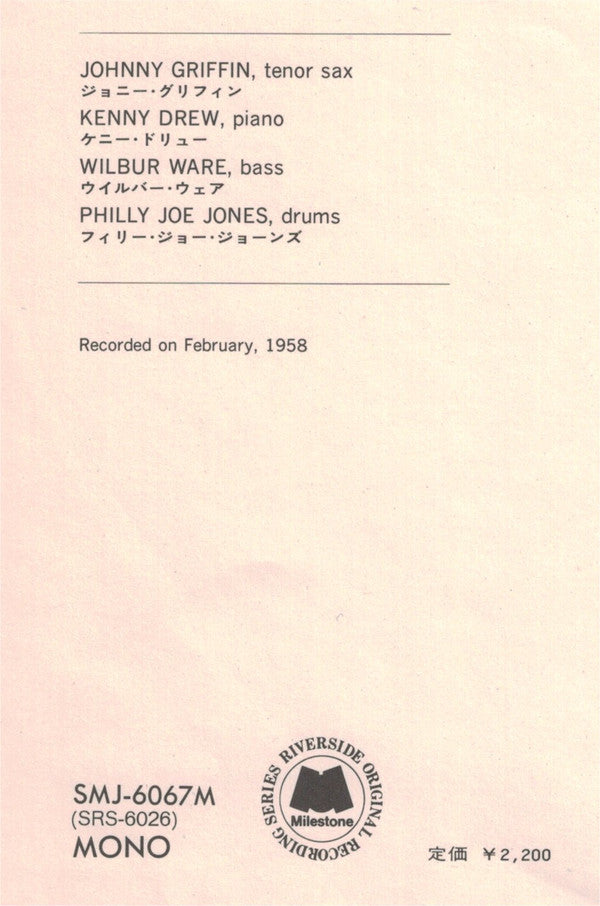 Recorded February 1958 Bill Grauer Productions Inc. NYC Manufactured and distributed by Victor Musical Industries, Inc., Tokyo, Japan Victor Musical Industries, Inc. ℗ 74 Riverside branded on center label Milestone logo only on Inlay sheet