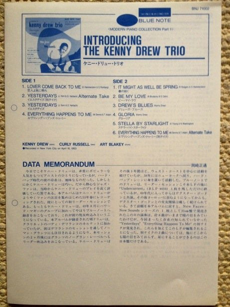 Recorded in New York City on April 16, 1953. Release date from document "Blue Note Japan Releases: Toshiba Era Part 2 (1983-1988)". Comes with a folded sheet of 4 pages with info in Japanese language. On pages 3 and 4 are reported the catalog of the series. The original release reported "Modern Jazz Series" on the cover. The alternate Takes of "Yesterdays"and "Everything Happens To Me" are previously unissued. All other selections were originally issued on Blue Note 10-inch [r7142441 BLP 5023. Tracks times not present.