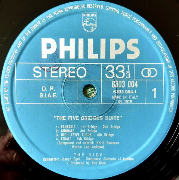 Italian repress in French sleeve similar to [r1738049 with text Ⓤ GRAVULE UNIVERSELLE Catalogue numbers: 6303 004 N - on sleeve spine 6303 004 - on labels 6 459 001 - on sleeve back Sleeve notes: Side A - Recorded live at Fairfield Halls, Croydon, October 17, 1969 Track B3 - Recorded at Fillmore East, New York Track B4 - Recorded at Trident Studio, London Credits track A.4 according to sleeve notes: "… a quintet of saxes and brass involving ... Chris Pyne (trombone)" a Charisma recording Made in Italy ℗ 1970