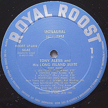 Copyright © 1955 Copyright ℗ 1986 Title on spine, front- & rearcover, labels: "Tony Aless And His Long Island Suite"