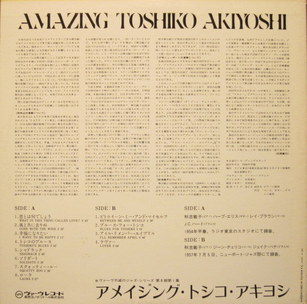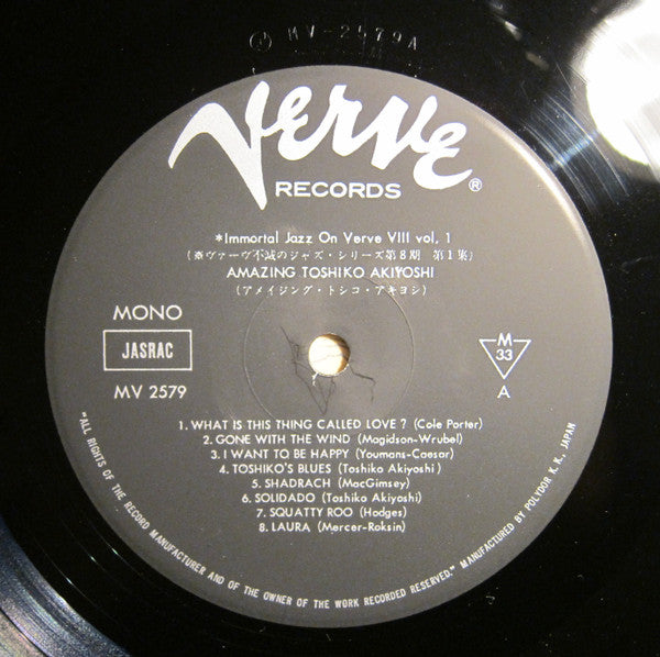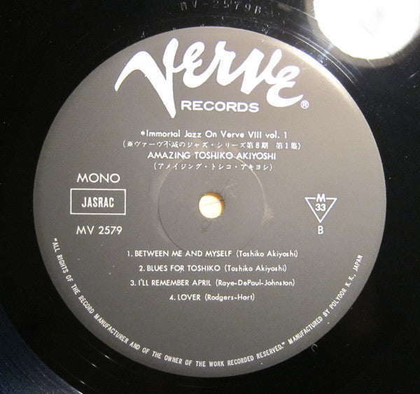 Back Cover: MANUFACTURED BY POLYDOR K.K., JAPAN KI 7607 Side A recorded 1954, Tokyo Side B recorded July 5, 1957, Newport