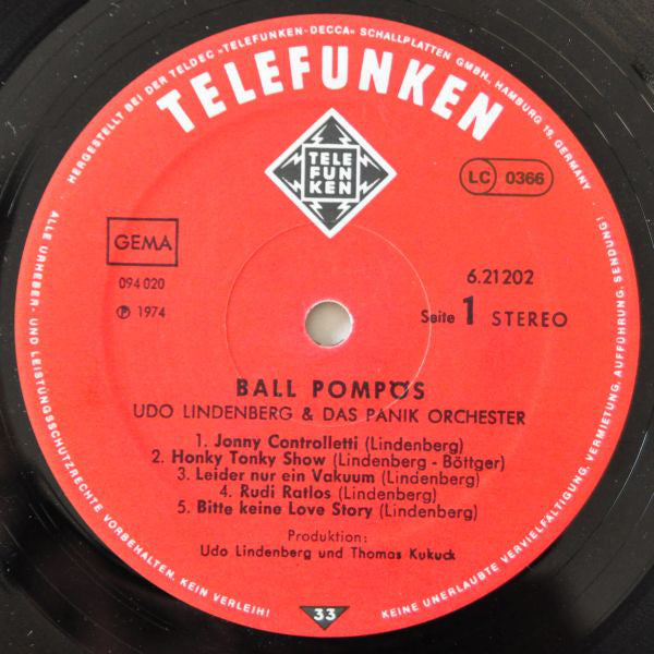 Udo Lindenberg Und Das Panikorchester : Ball Pompös (LP, Album, RE, Gat)