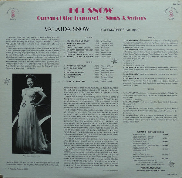 On tracks A3 to A5, the credits on back sleeve read "Same as 1." This is a typo, the accompanists are actually the same as on track 2. Recording locations and dates: A1: Copenhagen, July 26, 1940 A2 to A5: Stockholm, August 28, 1939 A6: New York, January 1950 A7, B3, B4: New York, 1945 A8: London, September 6, 1936 B1, B2: Soundtrack from a Soundie, U.S.A., 1946 B5, B6: Los Angeles, December 1945 B7: London, July 7, 1937