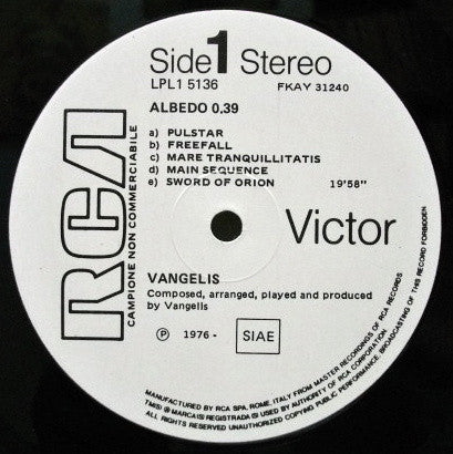 Campione non commerciabile. For promotional use. RCA logo on sleeve. RCA logo, "Victor" is on the center labels. "Manufactured By RCA SPA Rome From Master Recordings Of RCA Records" Printed In Italy - Graffiche Boccadoro.