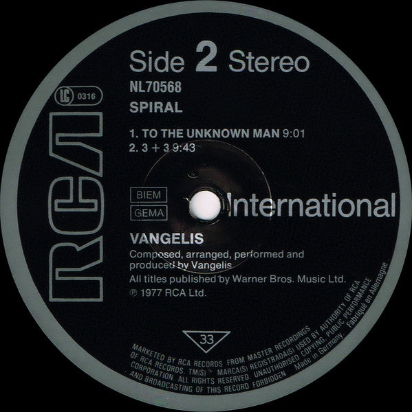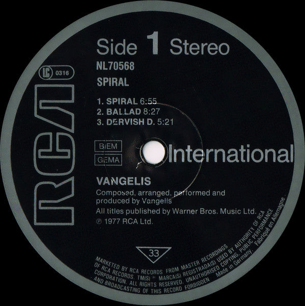 [on sleeve: Dervish D (inspired by the Dervish dancer who by his whirling realises the spiralling of the universe) Recorded at Nemo Studios, London, England, 1977. All titles published by Jam Music Establishment © 1977 Printed in Germany by TOPAC [on labels: ℗ 1977 RCA Ltd. Made in Germany All titles published by Warner Bros. Music Ltd. Repress of [r=989374 (1983)