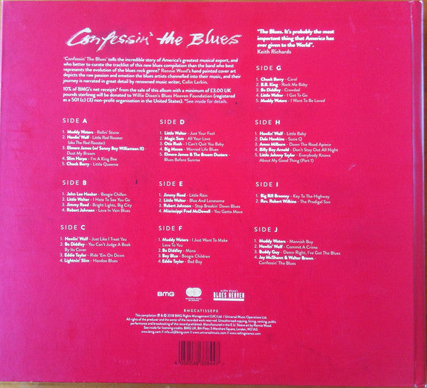 The box includes 5 x 10" vinyl, period inner sleeves, 4 x art cards, extended essay and iconic imagery of the blues legends. On sticker on shrink: Original blues masterpieces hand picked and curated in collaboration with The Rolling Stones Manufactured in the EU. This compilation ℗ & © 2018 BMG Rights Management (UK) Limited / Universal Music Operations Ltd.