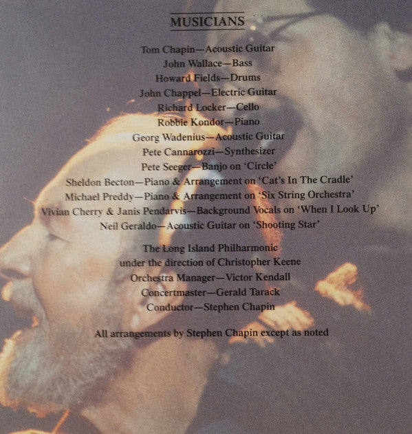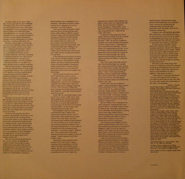 The Friends Of Harry Chapin Perform His Songs To Honor His 45th Birthday & The Awarding Of The Special Congressional Gold Medal. Carnegie Hall on December 7, 1987. Comes with printed innersleeve. Made In Holland.