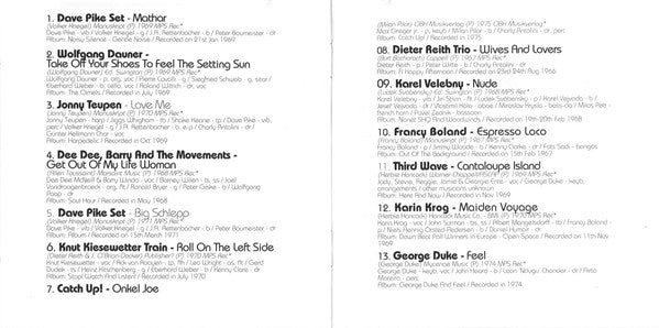 Talkin' Loud Long Player 1. Manuscript (P) 1969 MPS Rec* Album: Noisy Silence - Gentle Noise / Recorded on 21st Jan 1969 2. Ed. Swington (P) 1969 MPS Rec* Album: The Oimels / Recorded in July 1969 3. Manuscript (P) 1970 MPS Rec* Album: Harpadelic / Recorded in Oct 1969 4. Marsaint Music (P) 1968 MPS Rec* Album: Soul Hour / Recorded in May 1968 5. Manuscript (P) 1971 MPS Rec* Album: Album / Recorded on 15th March 1971 6. Publisher? (P) 1970 MPS Rec* Album: Stop! Watch And Listen! / Recorded in July 1970 7. OBH Musikverlag (P) 1975 OBH Musikverlag* Album: Catch Up! / Recorded in 1975 08. Cappell (P) 1967 MPS Rec* Album: A Happy Afternoon / Recorded on 23rd-24th Aug 1966 09. Ed. Swington (P) 1968 MPS Rec* Album: Nonet SHQ And Woodwinds / Recorded on 19th-20th Feb 1968 10. Manuscript (P) 1967 MPS Rec* Album: Out Of The Background / Recorded on 15th Feb 1967 11. Warner-Chappell/ASCAP (P) 1969 MPS Rec* Album: Here And Now / Recorded in Nov 1969 12. Hancock Music Co. - BMI (P) 1970 MPS Rec* Album: Down Beat Poll Winners In Europe - Open Space / Recorded on 11th Nov 1969 13. Mycenae Music (P) 1974 MPS Rec* Album: George Duke And Feel / Recorded in 1974 [sic Talkin Jazz 2 [release title on disc ℗ 1994 Polydor GMBH Hamburg