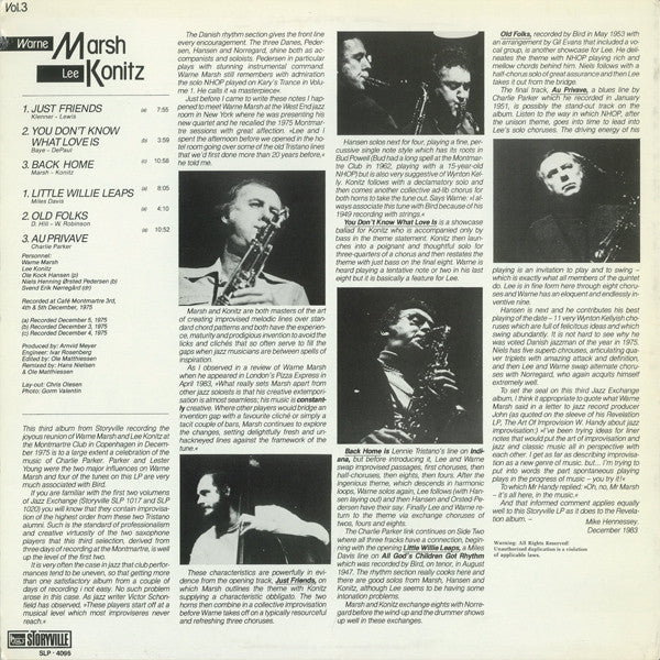 Recorded at Café Montmartre. A1 + B1-3 Recorded December 5, 1975. A2 Recorded December 3, 1975. A3 Recorded December 4, 1975.