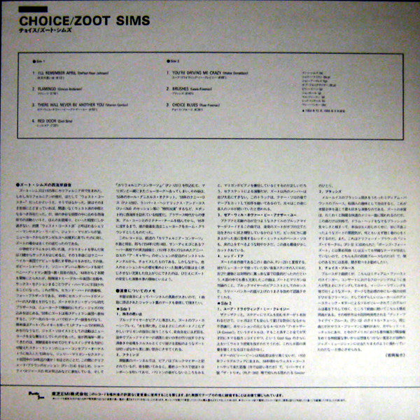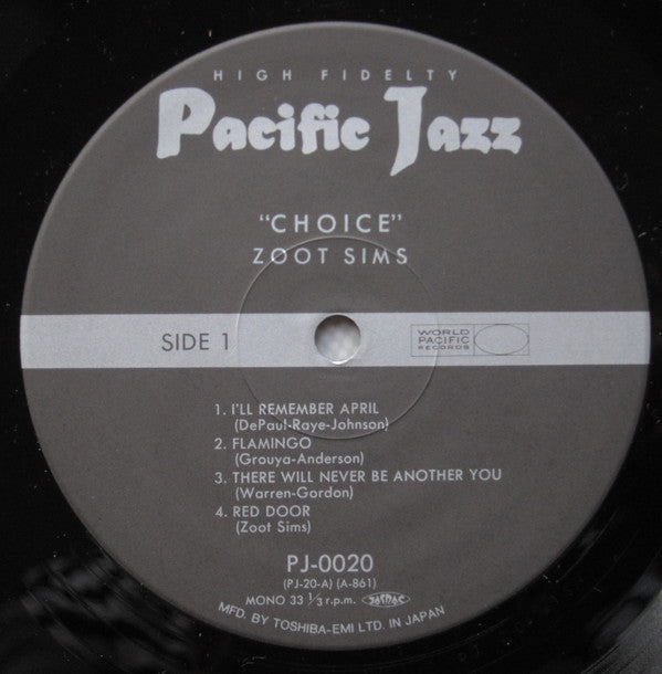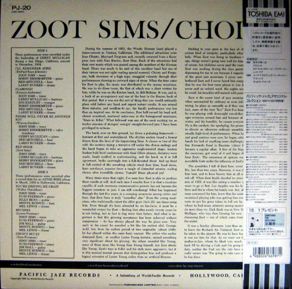 Side A recorded during a concert under leadership of Gerry Mulligan in San Diego, California in December, 1954. Side B recorded after a record date for an Annie Ross album in Hollywood, California in March, 1959. Copyright 1961 by World-Pacific Records