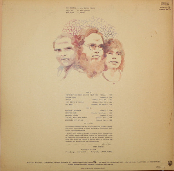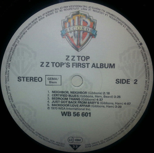 Frank Beard is credited as Rube Beard. All titles BMI. P,C 1980 WEA MUSIK Full Catalog # in the right upper corner: WB 56 601 (BSK 3268) and Germany: U France: WE 341 Catalog # on record labels: WB 56 601